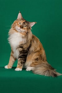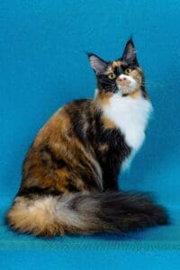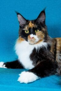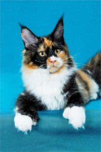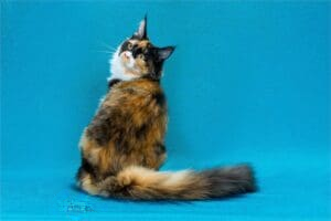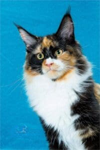 In the enchanting world of Maine Coons, few names shine as brightly as RW SGC Maine Coon Kitten Hub Texas Calboy. Born on January 6, 2017, Calboy is not just a cat; he is a phenomenon who has left an indelible mark on the show hall, captivating judges and cat enthusiasts alike with his astounding beauty and rare tricolored coat—brown classic Tortie with white. His lineage is confirmed through parentage tests at UC Davis, further solidifying his unique status.